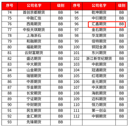 江海汇鑫期货有限公司是家BB等级的期货公司,成立于1995年5月2日,是经中国证监会批准的大型专业性期货公司,注册资本1亿元人民币。公司拥有大连商品交易所、上海期货交易所、郑州商品交易所、中国金融期货交易所的会员资格,主要从事商品期货经纪、金融期货经纪业务。